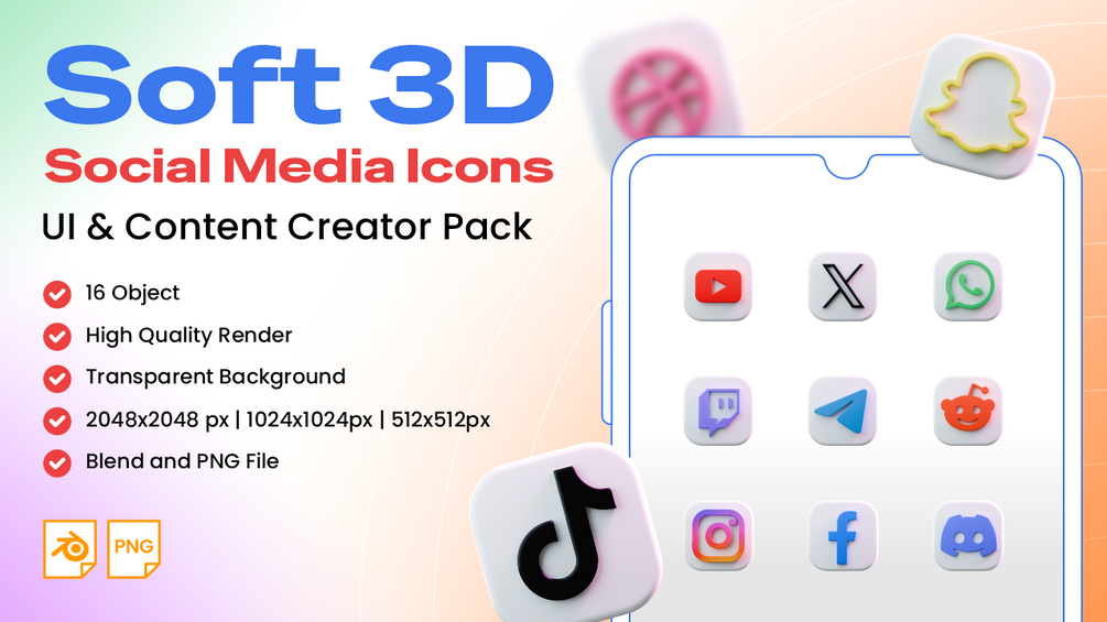 ๐ Soft 3D Social Media Icons โ UI & Content Creator Pack ๐